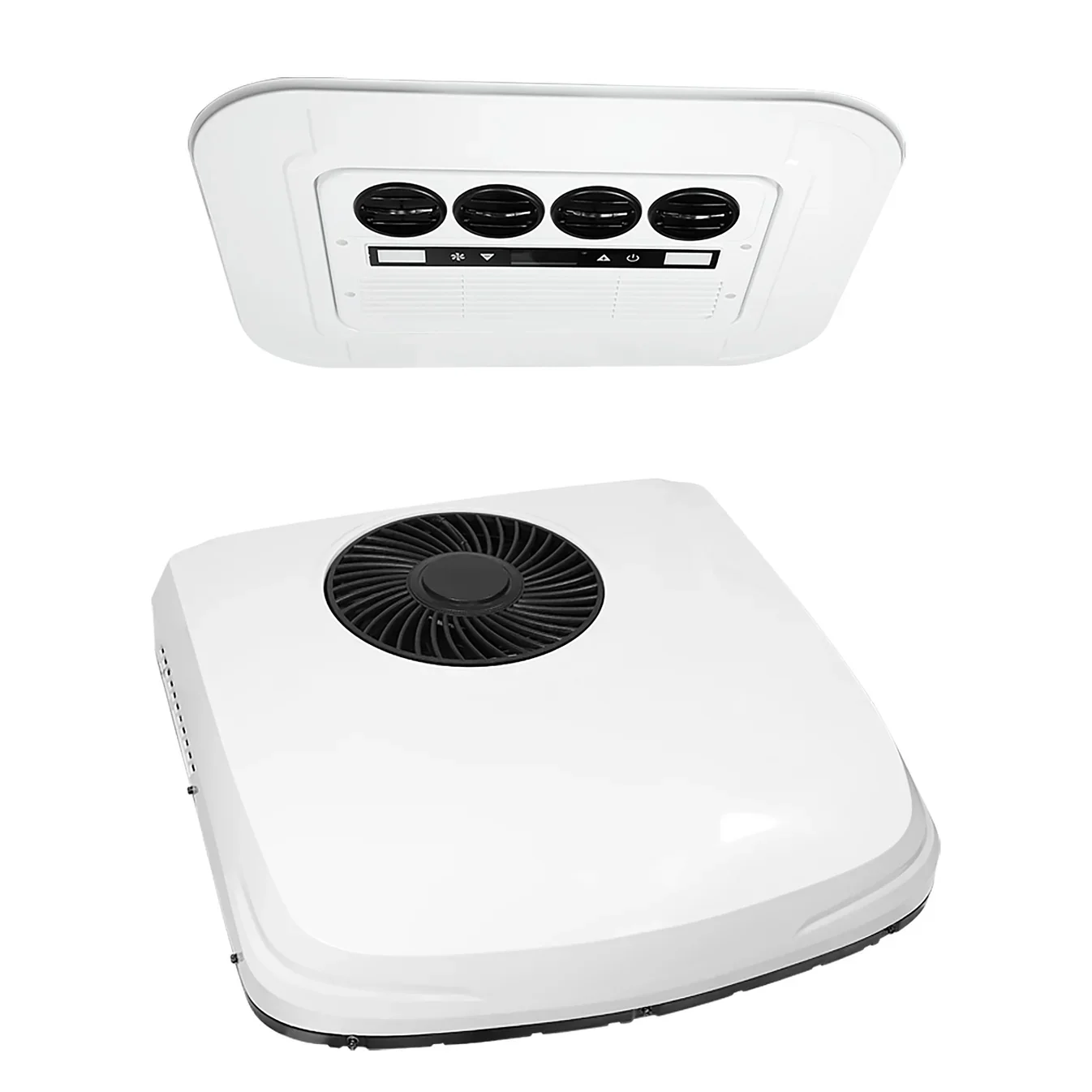 The OutequipPro 12V Rooftop Air Conditioner is a newer model with a high cooling capacity of 11,500 BTU and a unique heat pump function for both cooling and heating (down to 36°F). It fits standard 14″ x 14″ roof openings.